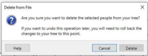 - Click on delete from the file. You will get an alert from the Family tree maker.